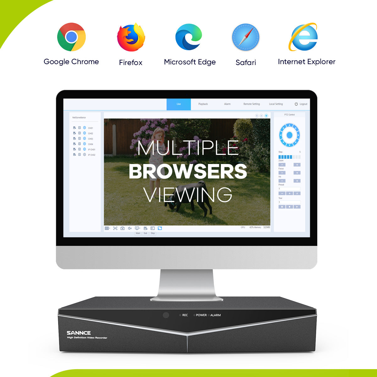 The powerful 5-in-1 DVR can integrate with all SANNCE and third-party cameras. With the compatibility, you can connect up to 16 analog or IP cameras into the smart DVR system, without any hardware limitation.