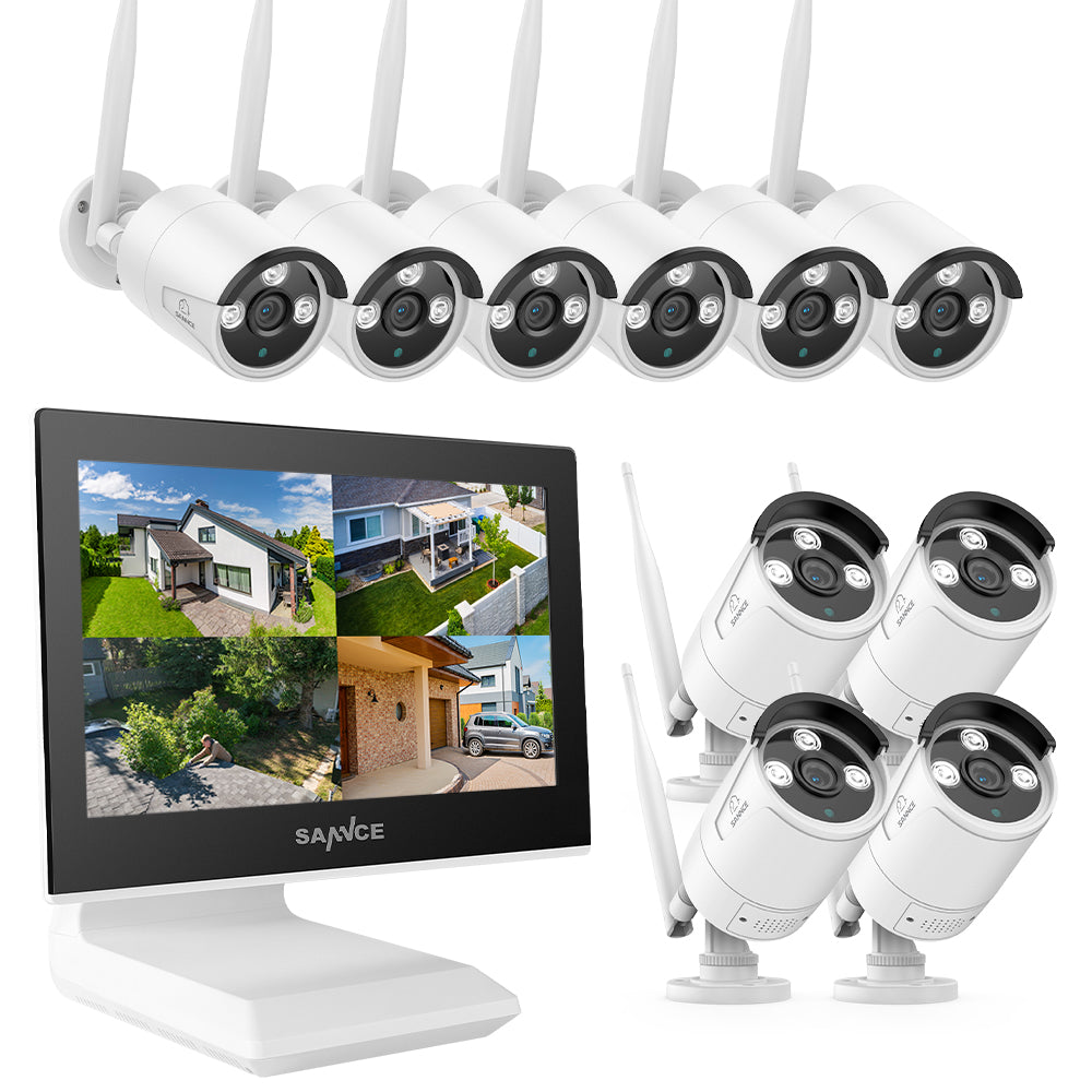 The 3MP Super HD Wi-Fi IP cameras deliver true Super HD crystal-clear images, much clearer than 1080p cameras. 8 infrared LEDs help the IP camera to record crisp night vision footage even from up to 66 ft away and 33 ft full-colour footage View local live stream directly on the 10.1’’ large LCD monitor without extra devices.