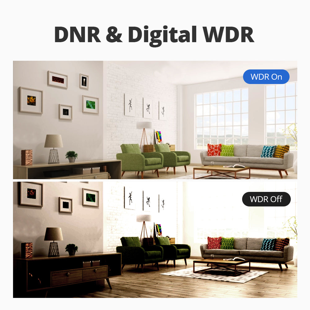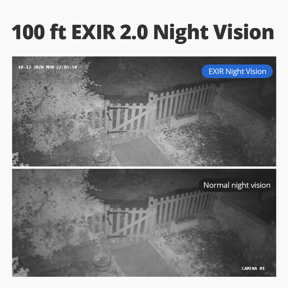 Capture everything in true 1080p Full HD regardless of day or night with the advanced 2MP image sensor. The EXIR 2.0 technology, DNR & WDR capture more ambient lighting for brighter images and deliver clearer videos even in the strongest lighting conditions, day or night.