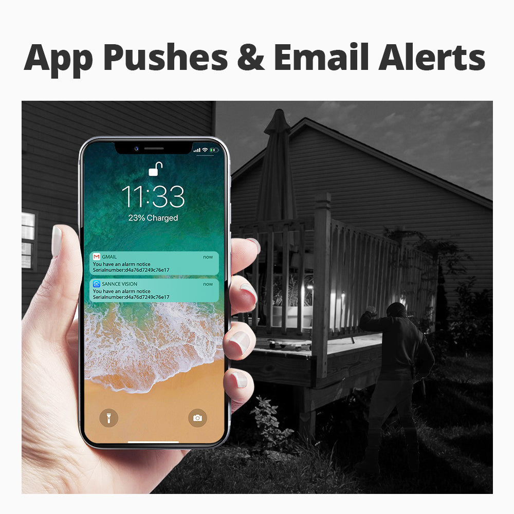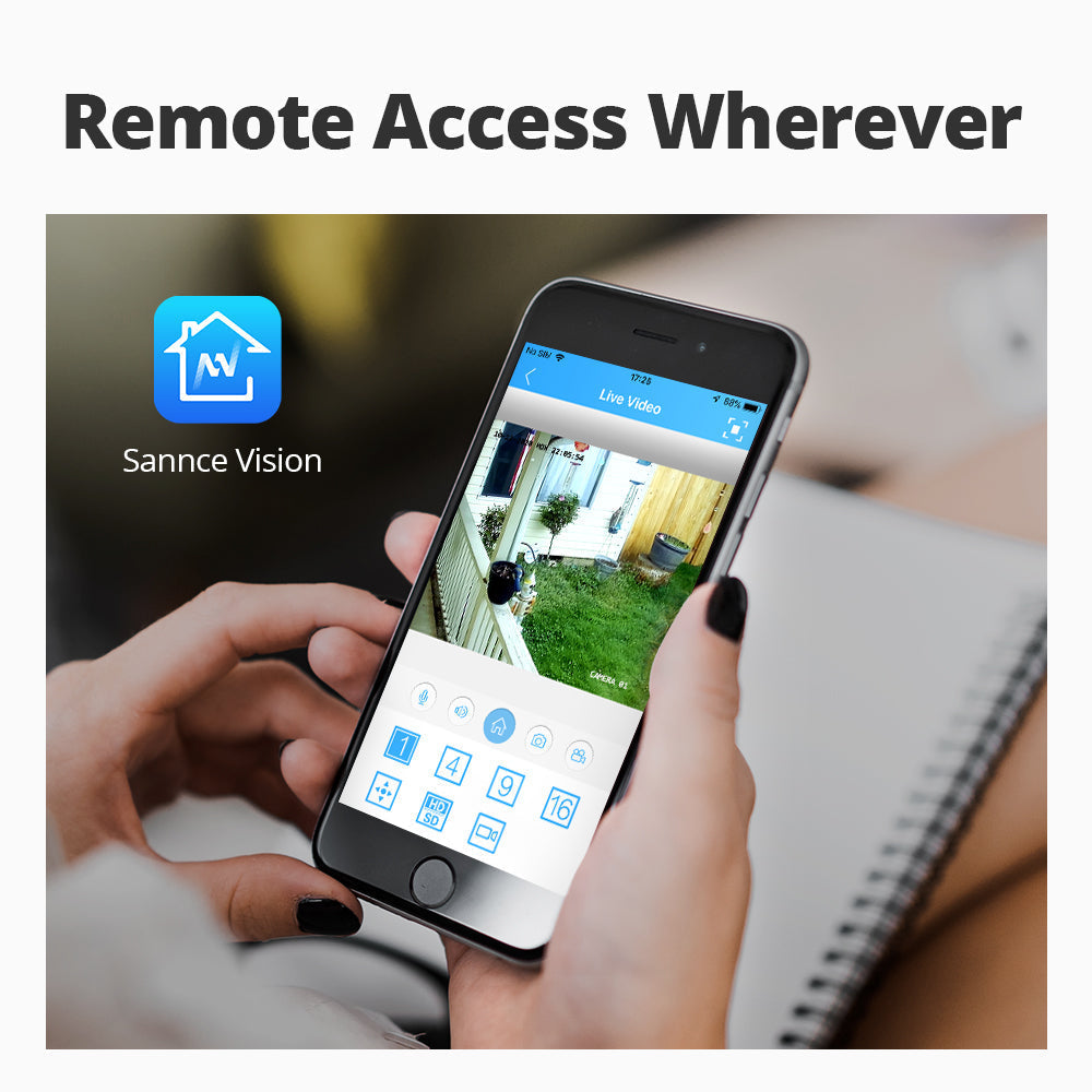 Upon the analog CCTV surveillance camera system detects anything unusual, it will send you instant app push notifications and email alerts with snapshots. Manage the whole system remotely via free SANNCE software on your smartphone, tablet, or computer.