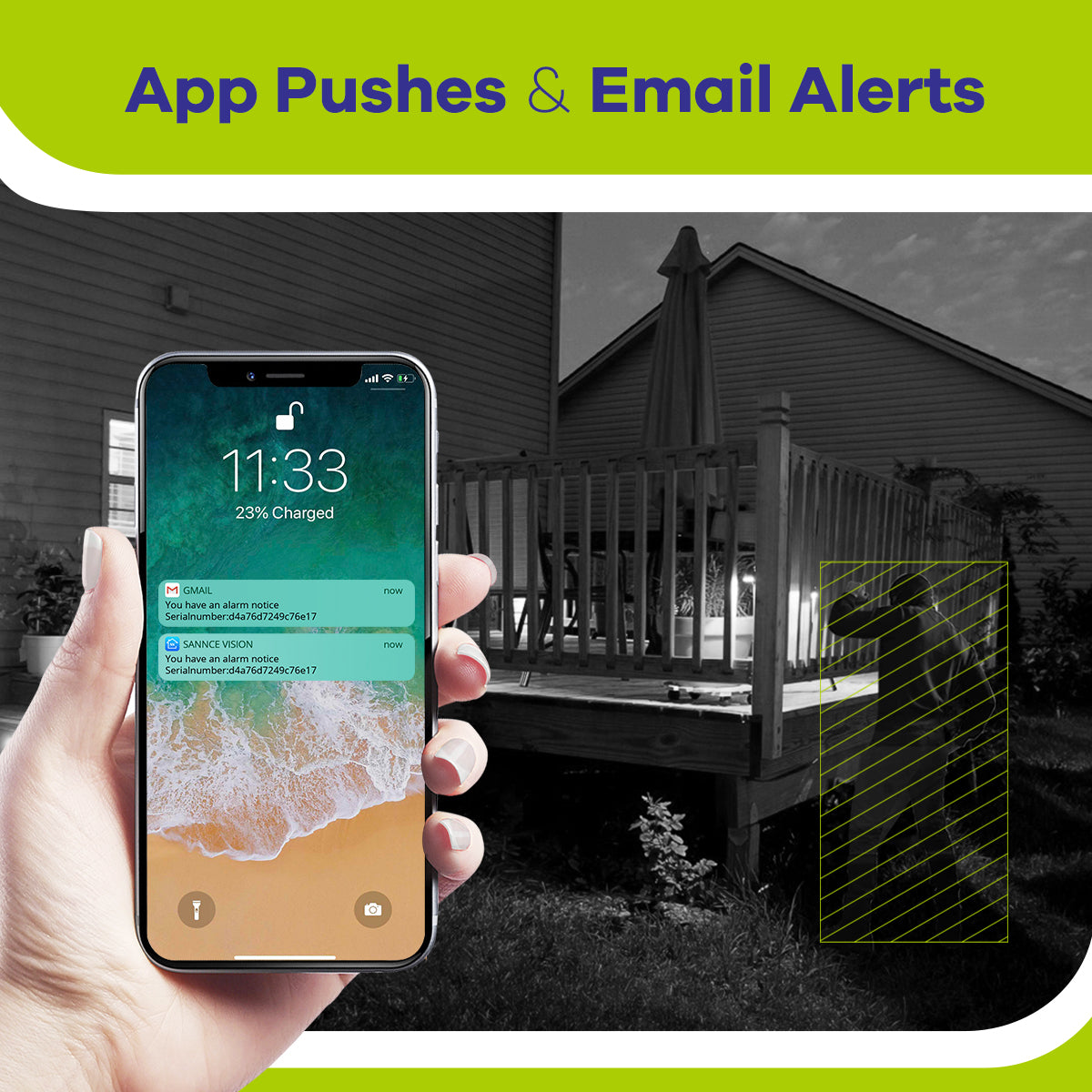 Upon the analog CCTV surveillance camera system detects anything unusual, it will send you instant app push notifications and email alerts with snapshots. Manage the whole system remotely via free SANNCE software on your smartphone, tablet or computer.