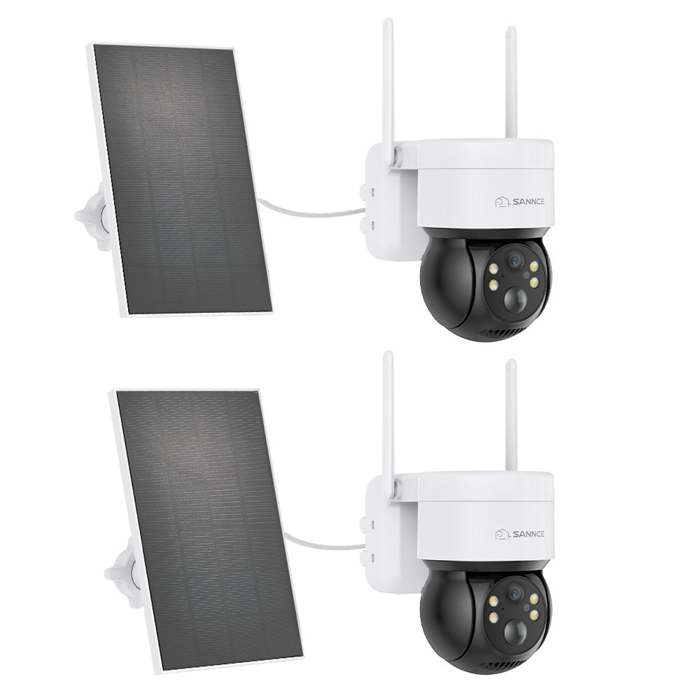 Pack of 2, 4MP Pan & Tilt Wire-Free IP Camera, Battery/Solar Powered, Color Night Vision, 2-Way Audio, Works with Alexa, PIR Humanoid Detection